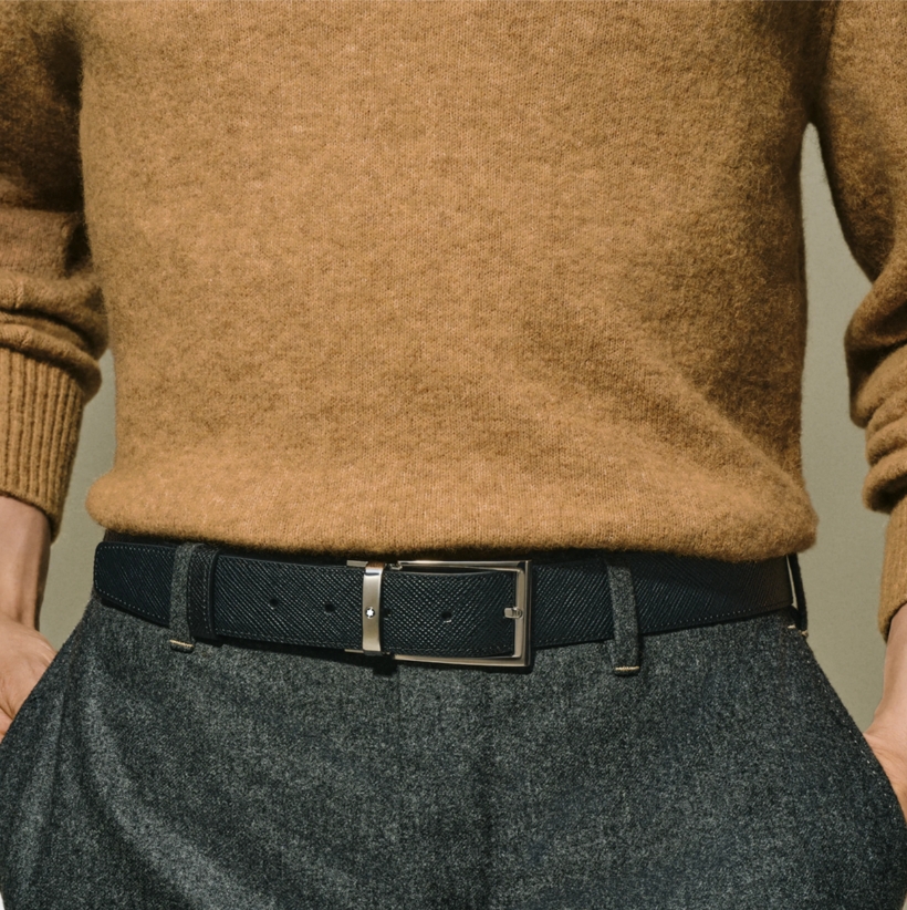 Двухсторонний мужской ремень Montblanc: кожа черного и коричневого цвета 35 мм от магазина премиальных ручек Premium Pens в Сургуте.